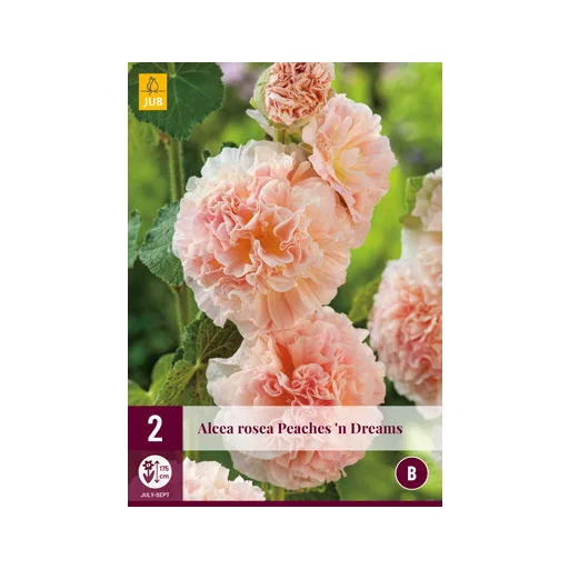 Az Alcea rosea Peaches n Dreams egy magas növekedésű növény (magassága 100-175 cm), erős szárral és nagy rózsaszín virágokkal. Ez egy gyönyörű függőlegesen virágzó növény. A virágzat gyönyörű és nagyon alkalmas a ház vagy a kerítés mellé.