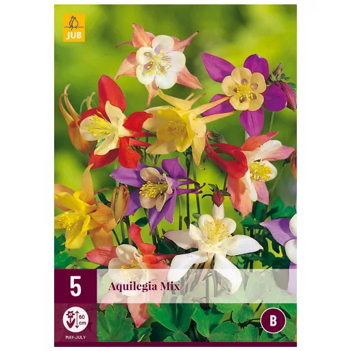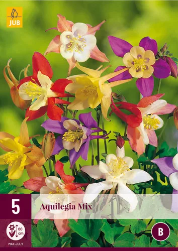 Az Aquilegia (Columbine) májustól júniusig virágzik, külömböző színű virágokkal. A kerti harangláb utóveti önmagát. Gyönyörűen kombinálható más rózsaszín vagy lila évelő növényekkel. A napos helyet kedveli, de gyakran félárnyékban is boldogul. Elvileg a (nehéz) agyagos talajok kivételével minden talajtípus elegendő. Az Aquilegia keverék magassága 50-60 cm.