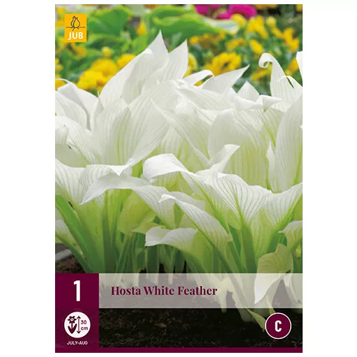 A Hosta White Feather népszerű növény. Ez elsősorban a dekoratív lombozatnak köszönhető. Ez a növény nagyon alkalmas egy tágas virágcserépbe ültetésre. A jó alakú, oválistól a szív alakú levelek feltűnő, fehér színűek. Nyáron fehér virágok jelennek meg a virágszárak mentén. A virágok a levelek felett helyezkednek el, és nyáron extra dekoratív értéket adnak a növénynek. A White Feather egy gyönyörű lombozatú növény, amely virágcserépben vagy szabadföldben is jól mutat. Ez a Hosta szereti a félárnyékos-árnyékos helyeket. Rendszeresen öntözze White Feather-jét, a gyökérlabda nem száradhat ki. A Hosta rosszul tolerálja a száraz talajt. A virágzási időszak végén vágja le az elhasznált virágszárakat. A Hosta nagyon szívós. Távolítsa el az elhalt leveleket tavasszal, hamarosan újra látni fogja az új hajtások csúcsát a talaj felett. A hosták nagyon vonzóak a virágzó évelő növények, például a Hemerocallis és az Astilbes növényekkel összeültetve is.