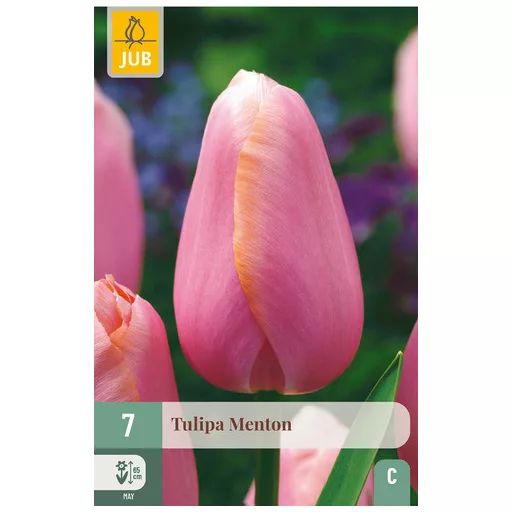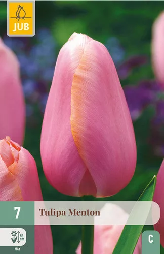 A feltűnő lazacrózsaszín Menton tulipán minden tavaszi kert szépsége. Gyönyörűen kombinálható más tulipánokkal, például a Clearwater tulipánnal. Feltűnő kerti tulipán, de teraszra vagy erkélyre cserépbe is illik.