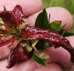 Az őszibarackokat támadó tafrina is feléledt. A fotó kedden készült, a védekezésről a4. felhívásban írtam.