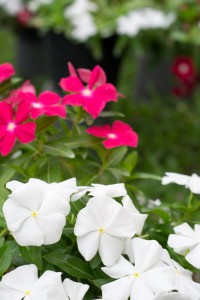 Ekkor már erejük teljében díszítenek a szokásos balkonnövények, viszont a levitézlett árvácskák után nem maradhat üresen az ágyás, láda. Kiváló utódnövény a meténgfélék családjába tartozó rózsameténg (Catharanthus rosea). Jó néhány rózsaszíntől a lilásig terjedő változata között lehet és érdemes is választani. Még a finom, elegáns, nemesített utódok is magukkal hozták a madagaszkári ősök jó tulajdonságait; kibírják tápanyag- és vízhiányt. Ezért, ha az árvácskák után még maradt a ládában föld ugyanabba beültethetőek. Persze meghálálják a dús talajt, de ez részben pótolható a tápoldatozással.