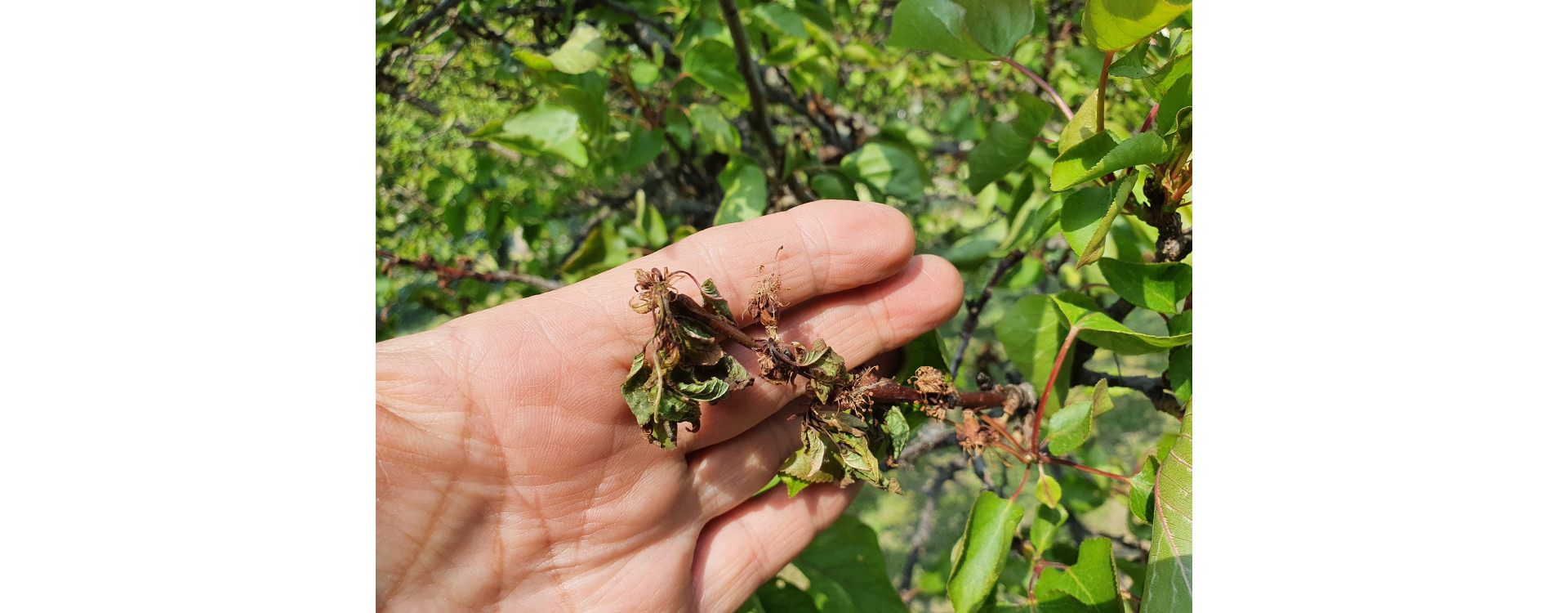 Még sohasem láttam az ideihez hasonló mértékű moníliafertőzést az Óbudai Megfigyelőkert kajszifáján és meggyfáján. Erről árulkodik az első két kép. Lehet-e még permetezni valamivel, kérdeztem Pénzes Béla professzor úrtól. „Véget ért a kórfolyamat, már nincs értelme permetezni!” – válaszolta. A virágzásban lehetett volna megmenteni a fákat!