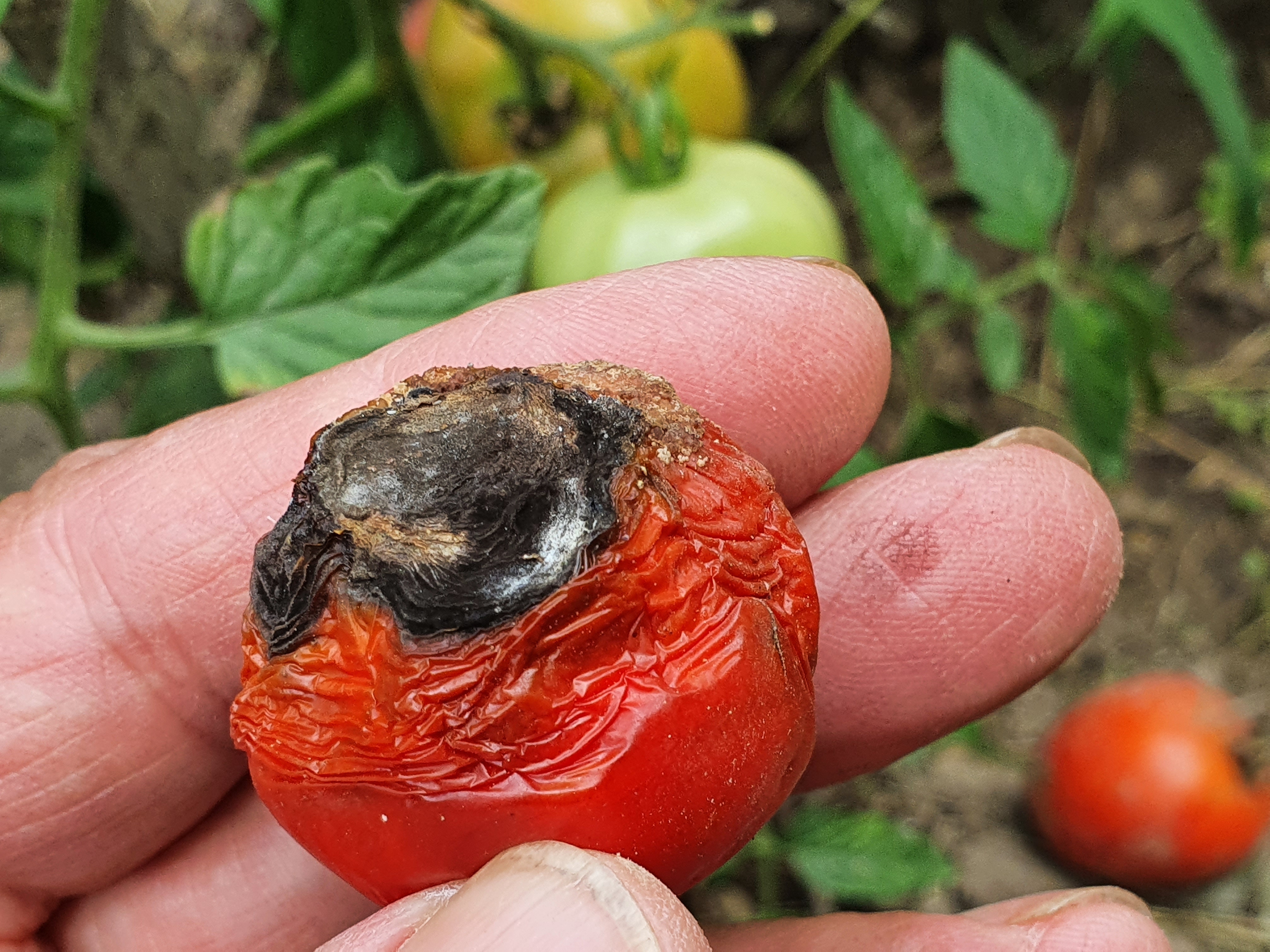 Nagy melegben és a hirtelen változó hőmérsékleten, vagy ha ingadozik a talaj és a levegő nedvessége, akkor a paradicsom és a paprika nem tudja felvenni a talajból a kalciumot. Hiánya csúcsrothadás (feketetalpasság) formájában jelentkezik a bogyók csúcsi részén (képen). Még lehet pótolni, olyan lombtrágyákkal, amelyek szerves kötésben tartalmazzák a kalciumot. Ilyen pl. a Wuxal kalcium vagy a Damisol kalcium. A szüretig többször ismételhetik a permetezést. Az almánál is fontos a lombtrágyázás, ahol a tároláskori foltosságot előzhetik meg ezekkel a kezelésekkel.