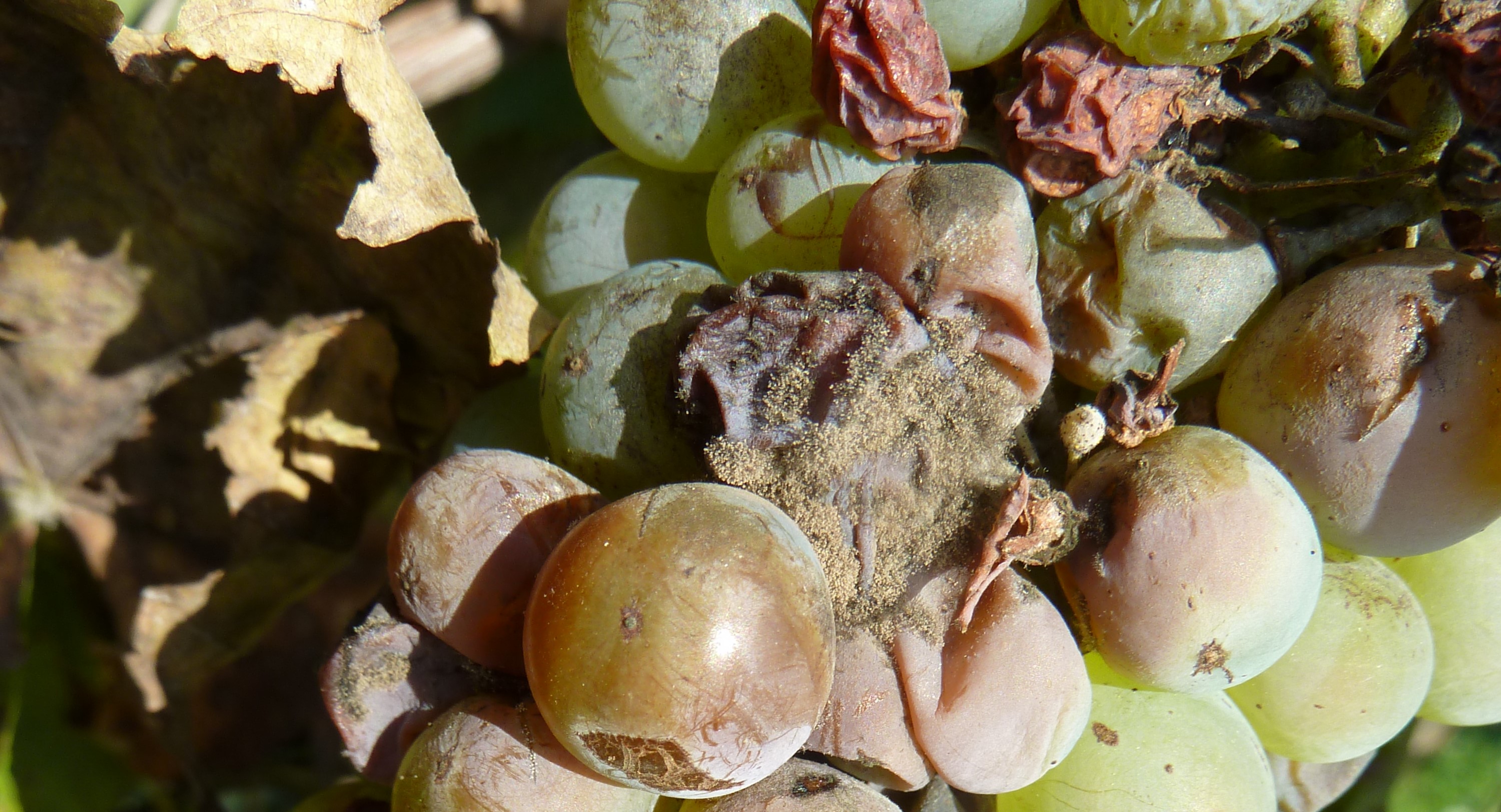 A gomba soktápnövényű, sőt az elhalt növényi részeken is megél. Tehát, gyakorlatilag mindig jelen van a környezetünkben, csak a számára alkalmas időjárást és növényfelületet várja. A szürkepenész berobbanását mindössze a megelőző 15-20 nap határozza meg. Éppen ezért az előrejelzése sem megoldott. Most a fürtön jelentkezhet. A korai fertőzésnél zöld vagy savanyú rothadásnak hívjuk a betegséget. Később, a bogyókon szürkésbarna foltok, majd a kiverődött egérszürke, bársonyos penészgyep jelzi a fertőzést. Ekkor már csak a beteg fürtrészek eltávolítása is segíthet (késsel, bogyózó ollóval). Úgy tűnik, hogy most a gomba terjedésének kedvező napok jönnek! Csak megelőzéssel védekezhetünk ellene! III. kategóriás pl. a Chorus 75 WG (14 nap), a Quadris (7 nap), a Switch 62,5 WG (bor:21, csemege:35 nap), a Teldor 500 SC (csemege:7 illetve bor:14 nap), a Cantus (28 nap), a Prolectus (bor 21, csemege 14 nap), a Qualy (21 nap) Idei újdonság a Botrefin (21 ill. 35 nap), a Kenja (21 nap). A Cabrio Top egyben lisztharmatra és peronoszpórára is engedélyezett (35 nap).