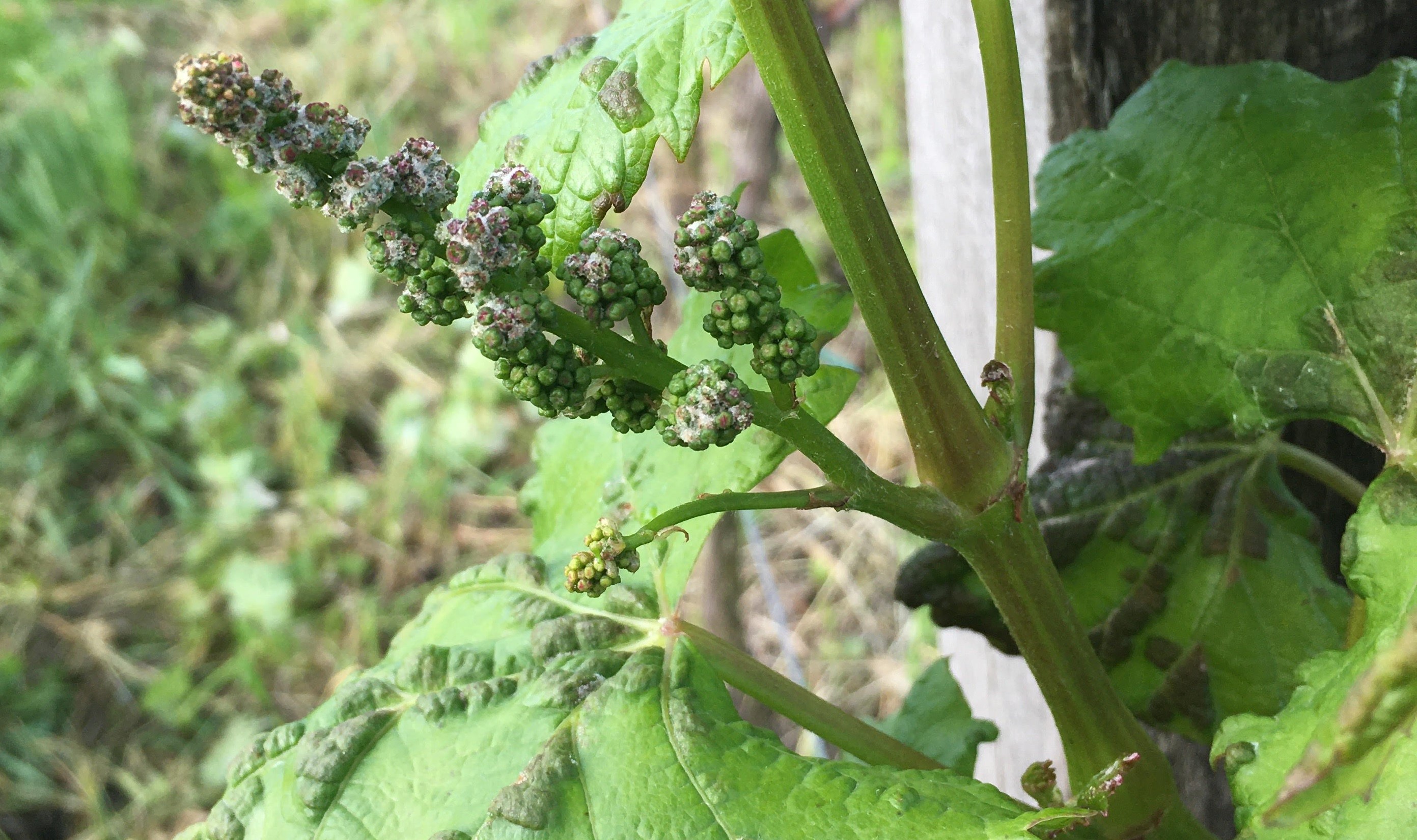 A május 18-án Turcsek Orsolya szőlő-gubacsatka fertőzést fotózott Ócsán (nyitóképen). A levélen jól ismerem a hólyagszerű tüneteit, de a virágzaton még nem láttam ilyen szintű fertőzést. Az idén már rügypattanáskor permetezni kellett volna. A kontakt kén már nem hatol át a nemezszerű bevonaton, talán még a mélyhatású Nissorun 25 SC gyérítheti az atkákat.