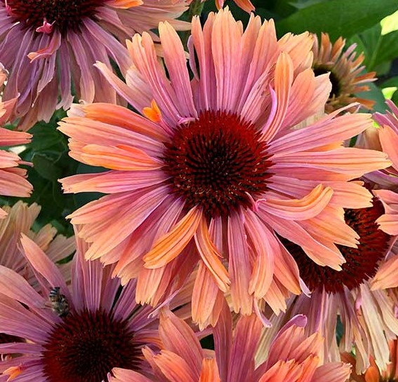 Begonia ‘Cocoa Enchanted Sunrise’, Coleus ‘Fancy Feathers Copper’, Coleus ‘Monkey Puzzle’, Coleus ‘Peach Julep’, Echinacea ‘Big Kahuna’, Echinacea ‘Fresco Apricot’, Echinacea ‘Prima Ginger’, Echinacea ‘Prima Saffron’, Echinacea ‘Supreme Cantaloupe’, Geum ‘Pretticoats Peach’, Heuchera ‘Georgia Peach’, Heuchera ‘Ginger Peach’, Heuchera ‘Paprika’, Heuchera ‘Peach Crisp’, Heuchera ‘Peach Flambé’, Heuchera ‘Northern Exposure Amber’, Heucherella ‘Buttered Rum’, Sedum ‘Peach Pearls’, Verbascum ‘Honey Dijon’.