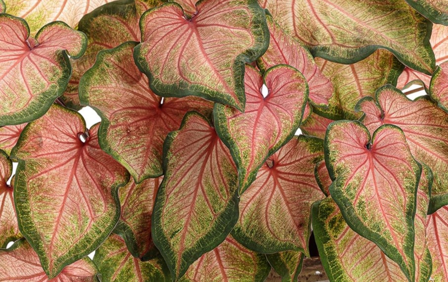 További barackszínű szobanövények: Ficus Chroma® ’Belize’, Caladium Heart to Heart® ‘Clowning Around’