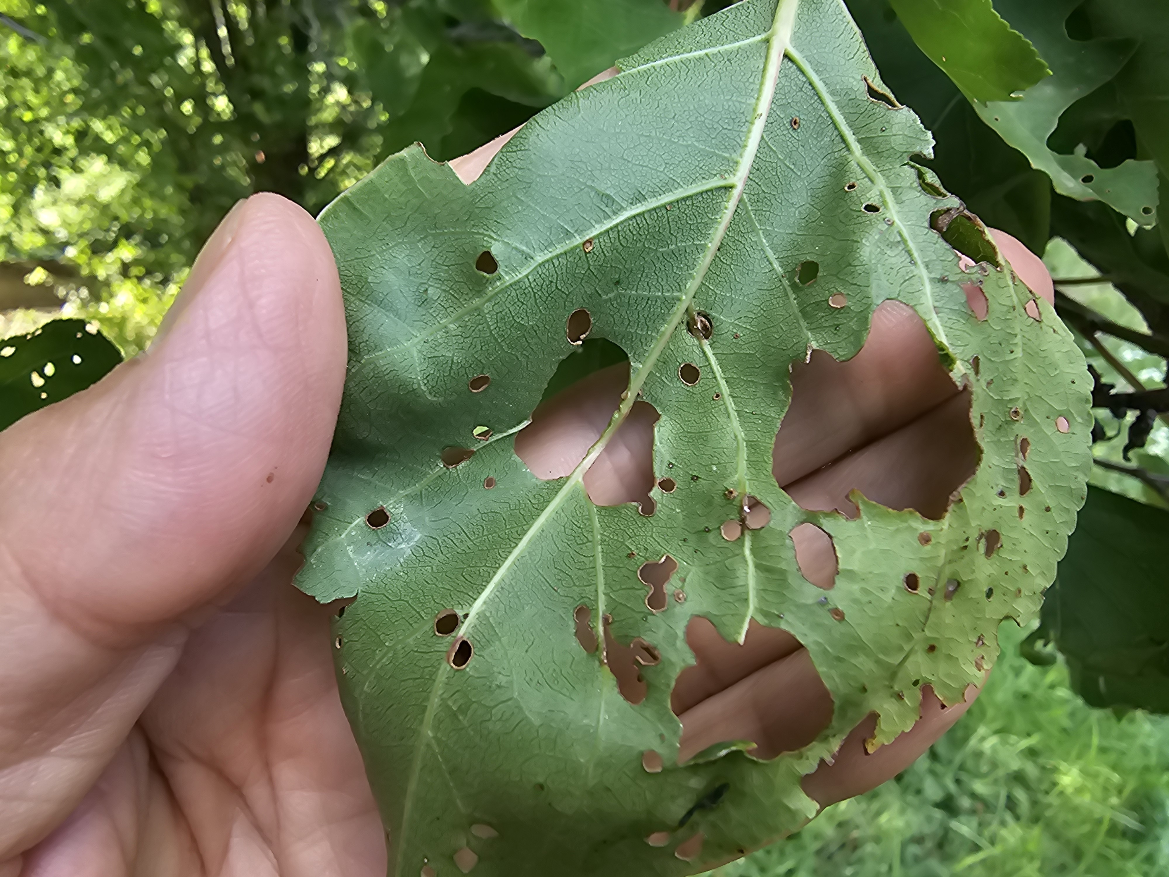 A legtöbb levélbetegségre a réztartalmú gombaölőket használhatják, és jó hír, hogy a letermett fáknál már nem kell a várakozási időket számolgatni (é.v.i. és m.v.i.). A sztigmina gombától lyukacsos kajszi levelét július 9-én fotóztam, már kb. a harmada hiányzik a levélnek (12. felhívás).