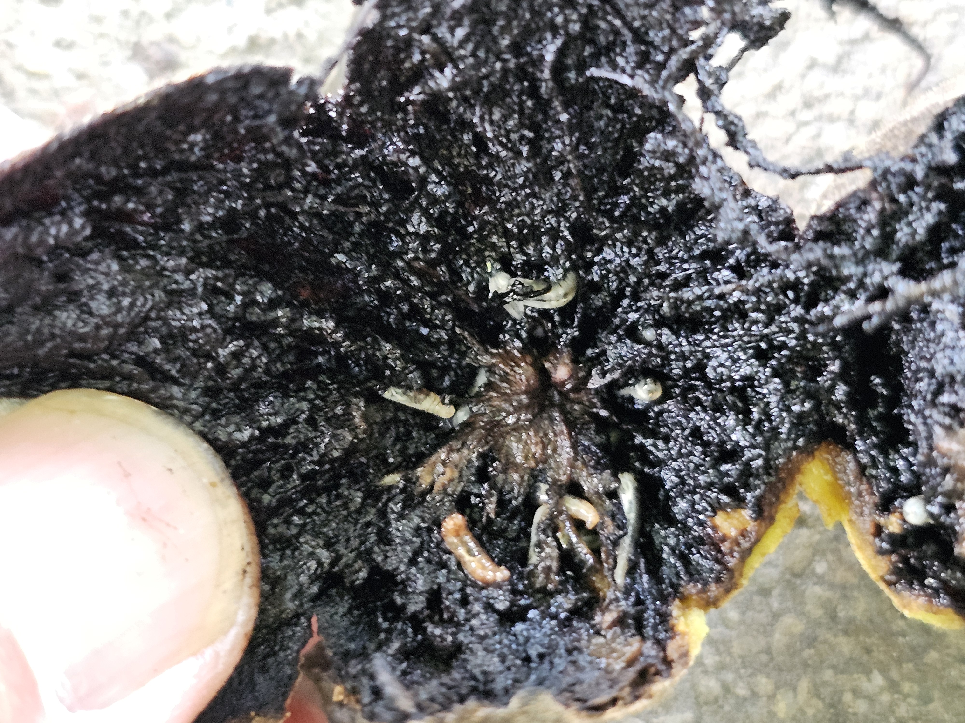 A pomázi csapdapontunkon egy hét alatt, keddtől-keddig 64 db nyugati dióburok fúrólégy ragadt fel a sárgalapra. Még rajzik, károsít. A fenti fotó augusztus 27-én készült egy pesti parkban, a feketedió nyüves terméséről. Tehát a közterületi Juglans nigráról is visszarepülhet a házi diófákra (14. és 19. felhívás).