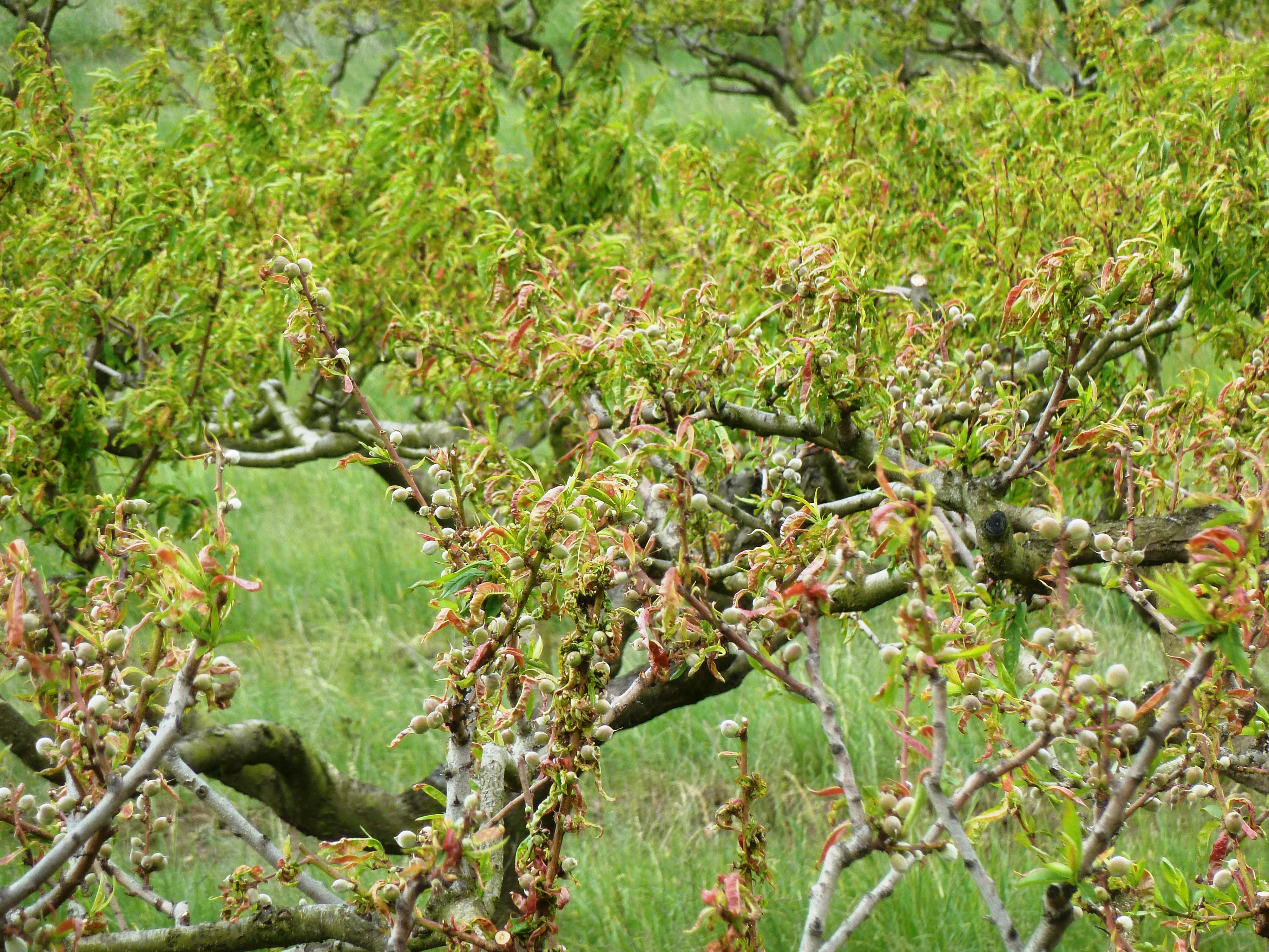 A tafrina gomba már 4 oC környékén szórhatja a spóráit (konídiumait) és ha ezek nedves növényi felületre jutnak, akkor kicsíráznak, megfertőzik a növényt. A legtöbb őszibarack és nektarin fajtánál kora tavasszal gondolnunk kell a erre a kórokozóra, ami akár teljes lombhullást is okozhat. Beszédes a latin neve: Taphrina deformans. Valóban, kezdetben fodrosodnak, ráncosodnak, színesednek a levelek a fertőzése nyomán. Sajnos a kertekben lévő termő fák többsége fogékony erre a kórokozóra. A jelenlegi borult, változékony időjárás pedig kedvez a tafrina fertőzésének. A meteorológusok szerint erre számíthatunk a hónap végéig. Tehát S.O.S. permetezést javaslok és a még csak rügypattanásban lévő fajtákon is el kell kezdeni a kezelést.