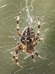 Nyáron rengetegféle pók él a házban, kertben. Legtöbbször csak hálójával lehet találkozni, de akinek van szeme az ilyesmire, észreveheti magát a hálóban figyelő, netán táplálkozó egyedet is. Nehezebb a helyzet a háló nélkül vadászó pókokkal. Ez utóbbiak ugyanis jól látnak, míg a hálót szövők inkább másban erősek, ők a nehézségi erőt érzékelve veszik észre a halóba ragadó zsákmányt. Ha fogukra való, megölik és körbeszőve konzerválják. Ha nem ennivaló, akkor kivágják a hálóból. Mindez azért figyelemre méltó, mert a kerek hálót fonó pókot többsége, sosem a ragadós fogófonalakon mászkál, hanem a száraz vázfonalakon közlekedik, és a küllőfonalakon kapaszkodnak a zsákmány közvetlen közelébe.