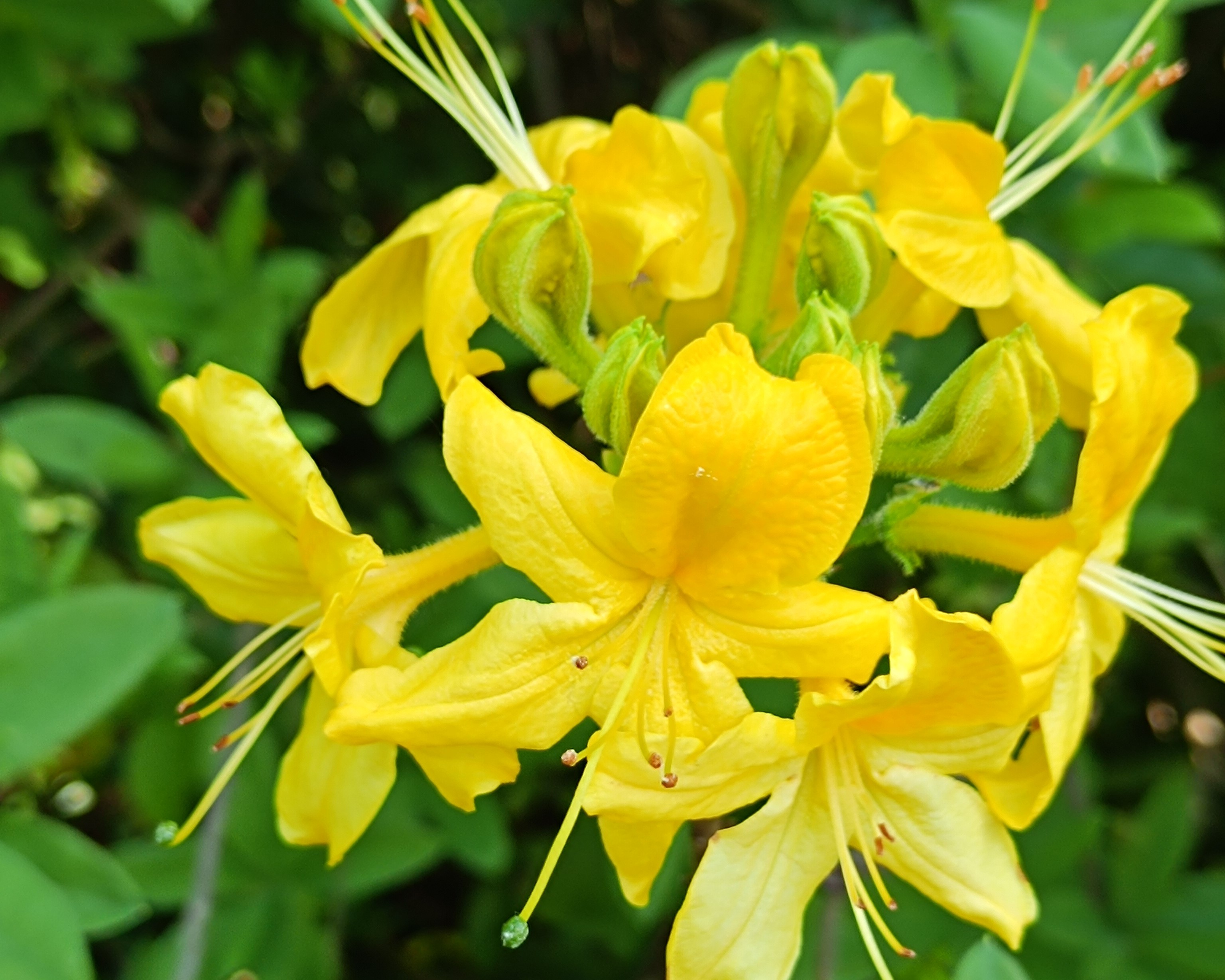 • Lombhullató azáleák: pl. Rhododendron luteum (erősen illatos, sárga virág)