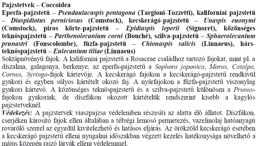 – Diaspidiotus perniciosus (Comstock), kecskerágó-pajzstetű – Unaspis euonymi