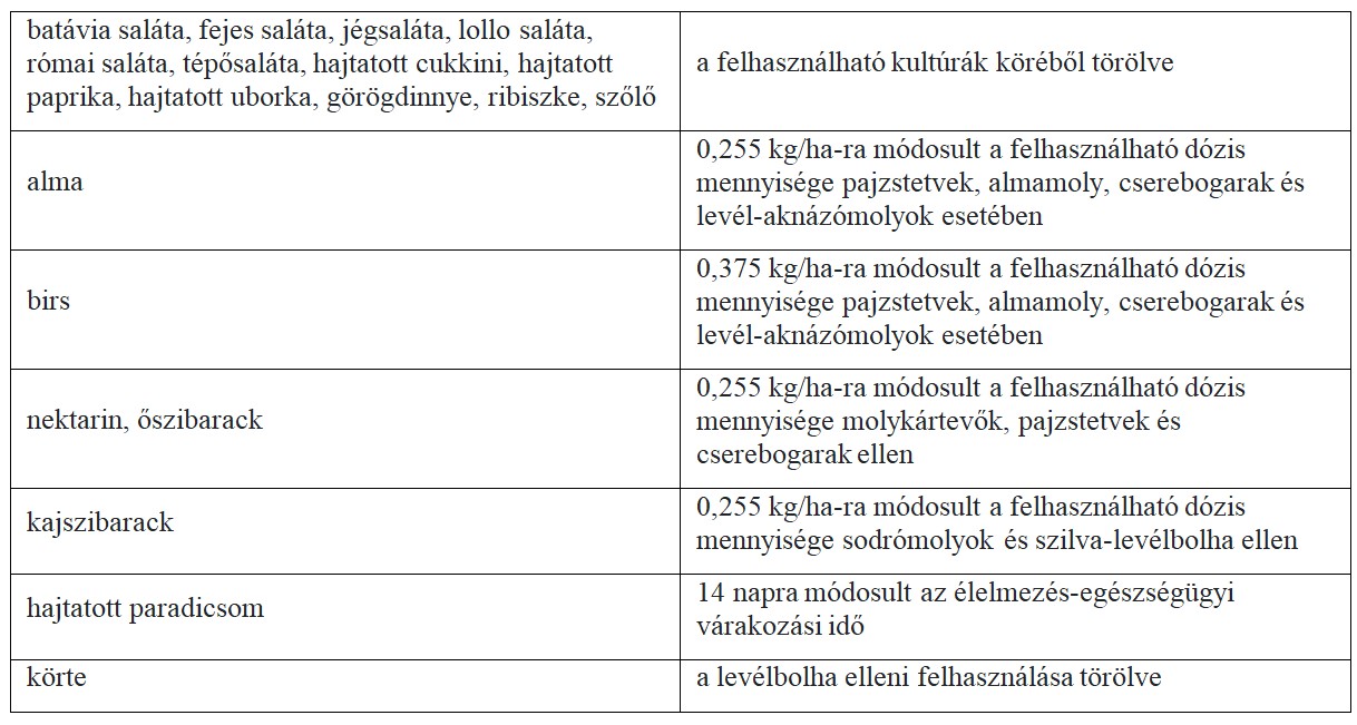 Az acetamiprid hatóanyagú készítmények új szermaradékszintjének alkalmazása 2025. augusztus 19-től válik kötelezővé. A módosításban érintett készítmények 2025. augusztus 18-ig felhasználhatóak a törölt kultúrák esetében, a jelenleg forgalomban lévő címkeszöveg alapján.