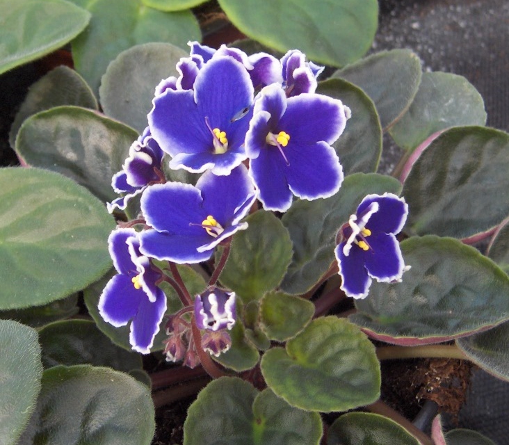 A levelei kerekdedek vagy szív alakúak bolyhos felszínnel. A levelek felszíne zöld, míg a fonákuk pirosas, néha lilás esetenként világoszöld árnyalatú. Virágai az egyszerűtől az összetettig megtalálható. A színűk a fehértől a rózsaszínen, vörösön, kéken át, de még a tarka színárnyalatig is előfordul.