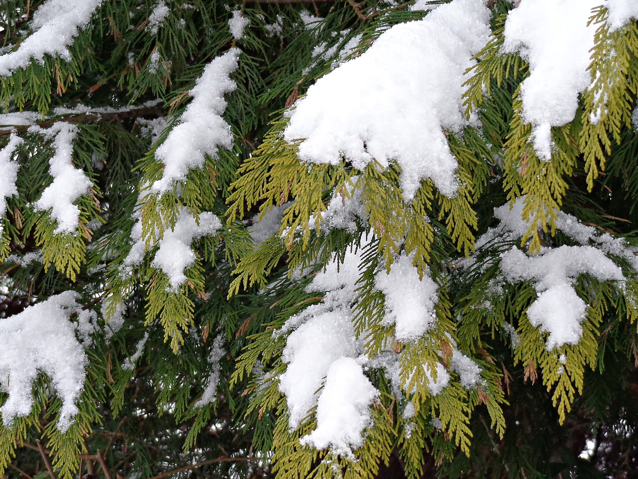 Viszont a kerti örökzöldek, tuják ágain, bármilyen szép is a havas ág, érdemes leverni, ráfagyott esőt, vagy mégoly’ szép is legyen, a havat, mert a nagy súly letörheti az ágakat. Ahol a napsütés éri a tujákat, ott nem kell semmit tenni, mert cseppé válik a súlyos jégpáncél. Ha viszont a növény árnyékban maradt, akkor seprűnyéllel, prakkerrel, vagy valamilyen alkalmas bottal lehet óvatosan püfölni a külső lombfelülelet. Ha tanácsolható, ne az ágakat verjék, mert a hosszú gally "kirugózza" az ütést és így nem potyognak le a fagyos darabok. Ilyenkor az sem baj, ha némi levél is lehullik.