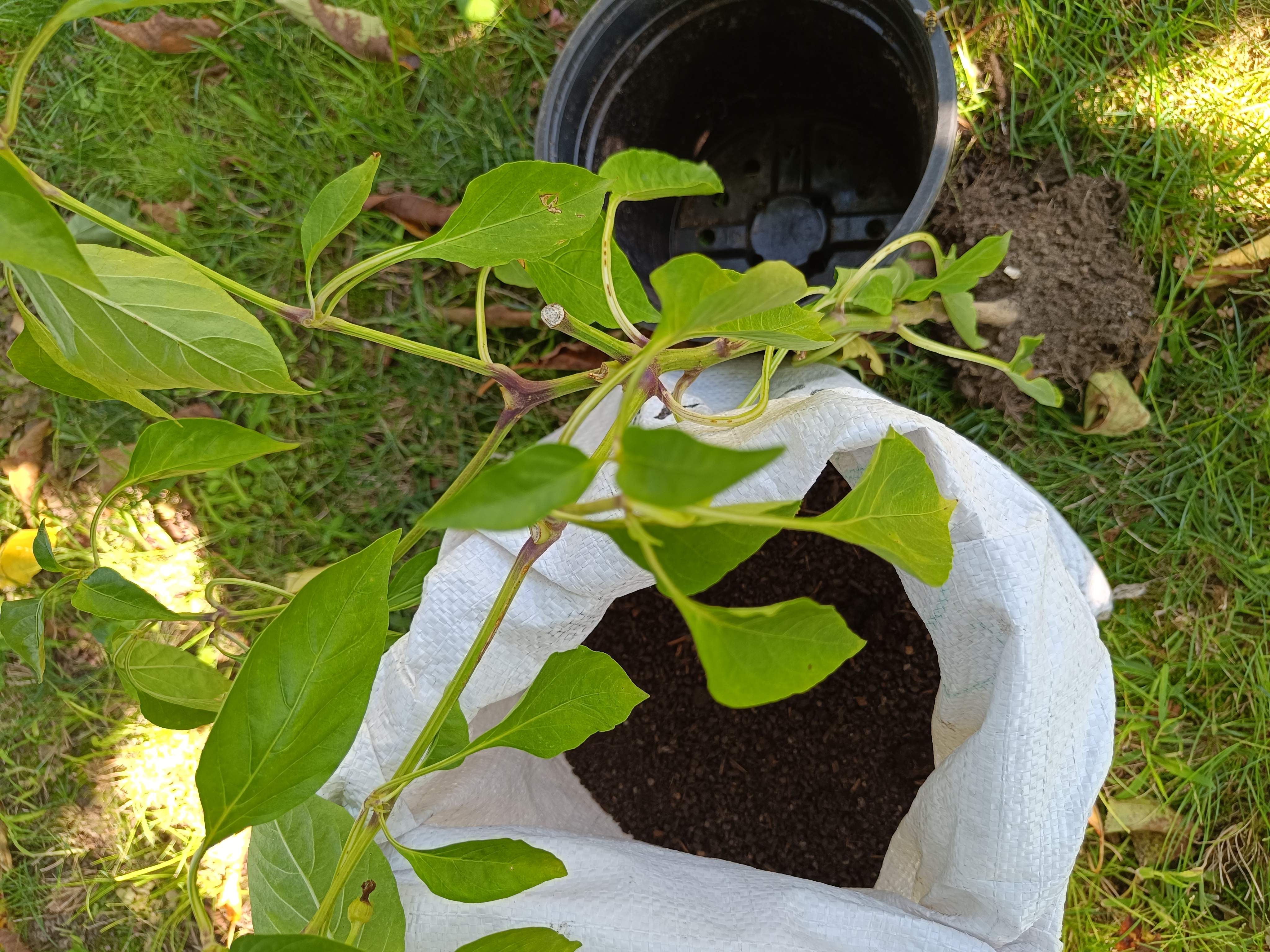 Amint előkészítettük a cserepeket és kiválasztottuk a megfelelő töveket, megkezdődhet a beültetés. A munkafolyamat előtt szedjük le a már érett terméseket a növényekről, a félig éretteket még rajta hagyhatjuk. Ezután ásóval óvatosan ássuk körbe a paprikákat. Célszerű minél mélyebbre ásni, fellazítani a talajt, hogy a gyökérzet ne sérüljön meg. Amikor már elég mélyen alá tudunk nyúlni, egy tompa ásóval, vagy lapáttal óvatosan emeljük ki az egész tövet gyökerestül a talajból, és helyezzük a teleltetésre előkészített cserépbe. A cserépbe ültetés után pedig öntözzük be alaposan a növényeket, hogy a gyökerek minél jobban beiszapolódjank.
