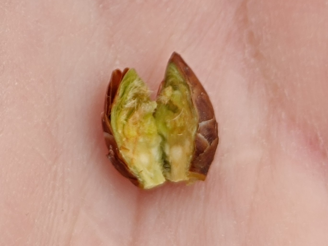 Egészséges rügy: élénk zöld, borsóhéj színű belső rész