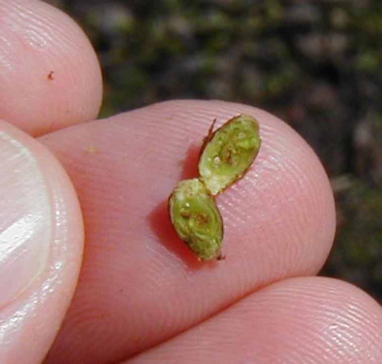A fagykárosodott rügy belsejében barnás vagy feketés elszíneződés látható. Az egészséges rügy belseje élénk zöld színű.