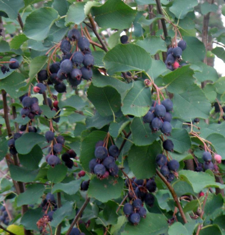 A jellegzetes kerek sötétlila bogyók ősszel kezdenek érni. Rendkívül bőtermő cserje, a telepítés utáni 4-5. évben már akár hét kilogramm termés is szüretelhető egy-egy bokorról.