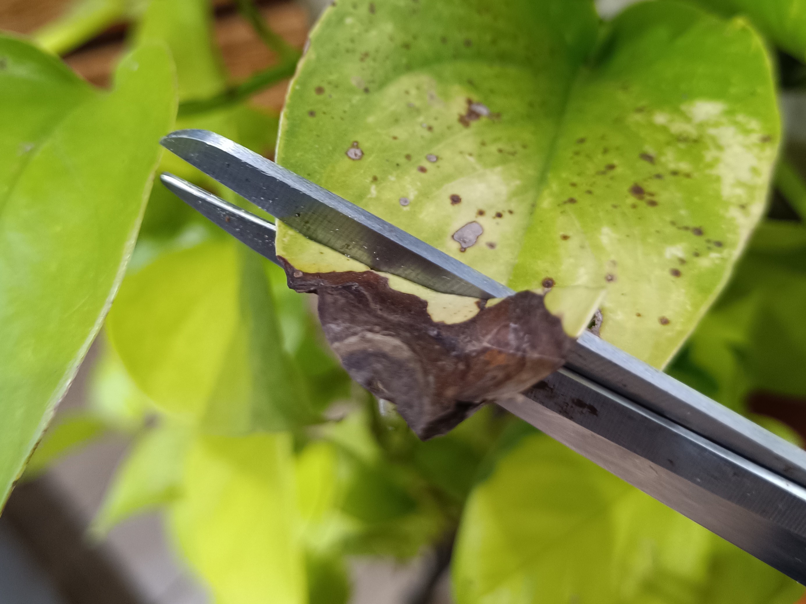 - Fontos tudni, hogy az elbarnult levélrészek már nem gyógyulnak, ezért azokat érdemes levágni, miközben a kiváltó ok megszüntetésére koncentrálunk.