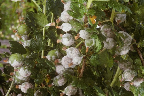 Sokszor utaltam már a köszméte amerikai lisztharmatának a termésre gyakorolt súlyos károsítására, ami a tünetek megjelenése után már fékezhetetlen (képen). A kórokozó elleni beavatkozás reméljük, hogy még nem késett el. Javasolt gombaölő szerek: Quadris vagy Signum + kén, ismételve.