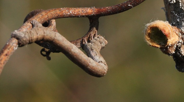 A szőlői rügyei több borvidéken már barkásodik. Az egyes dűlők fekvése, déli lejtők, gyorsabban felmelegedő talajok és még sok egyéb tényező befolyásolja előrehaladottságát. Azonban még lehet – sőt ajánlott is – a lemosó permetezések elvégzése, az általánosan elfogadott hatékonysági kör mellett az éköves araszoló lárváinak nagyon korai károsításával is számolva. Az elmúlt években egyre jelentősebb rügykárosítóként találkozhattunk vele – elsősorban erdők közelében. Az enyhe tél következtében a lárvák fejlődése akadálytalanul zajlott, éhségük egyre fokozódik. A rügyeket a lárvák kiodvasítják (képen fenn), így közvetlenül a termés mennyiségét is kedvezőtlenül befolyásolják. Az olajos lemosó szerek (Nevikén, Vegesol, Agrokén, Vektafid stb.) jó hatékonysággal pusztítják a kártevőt.