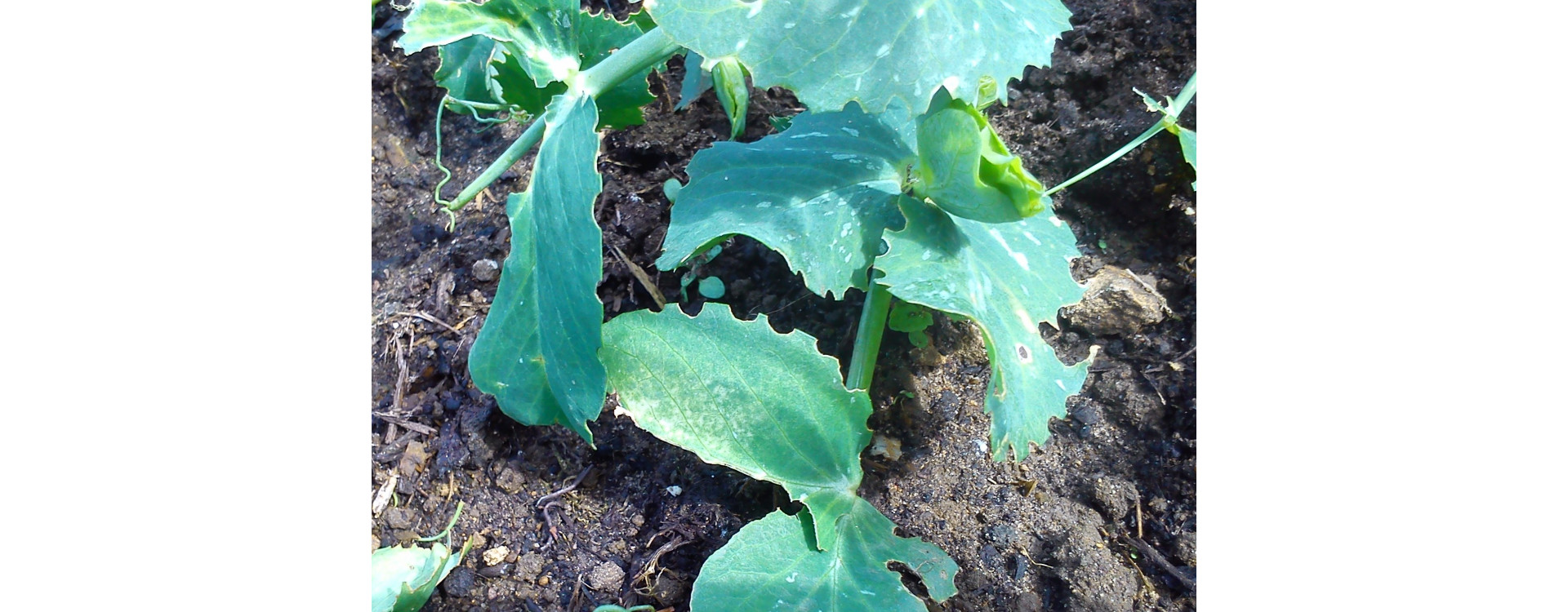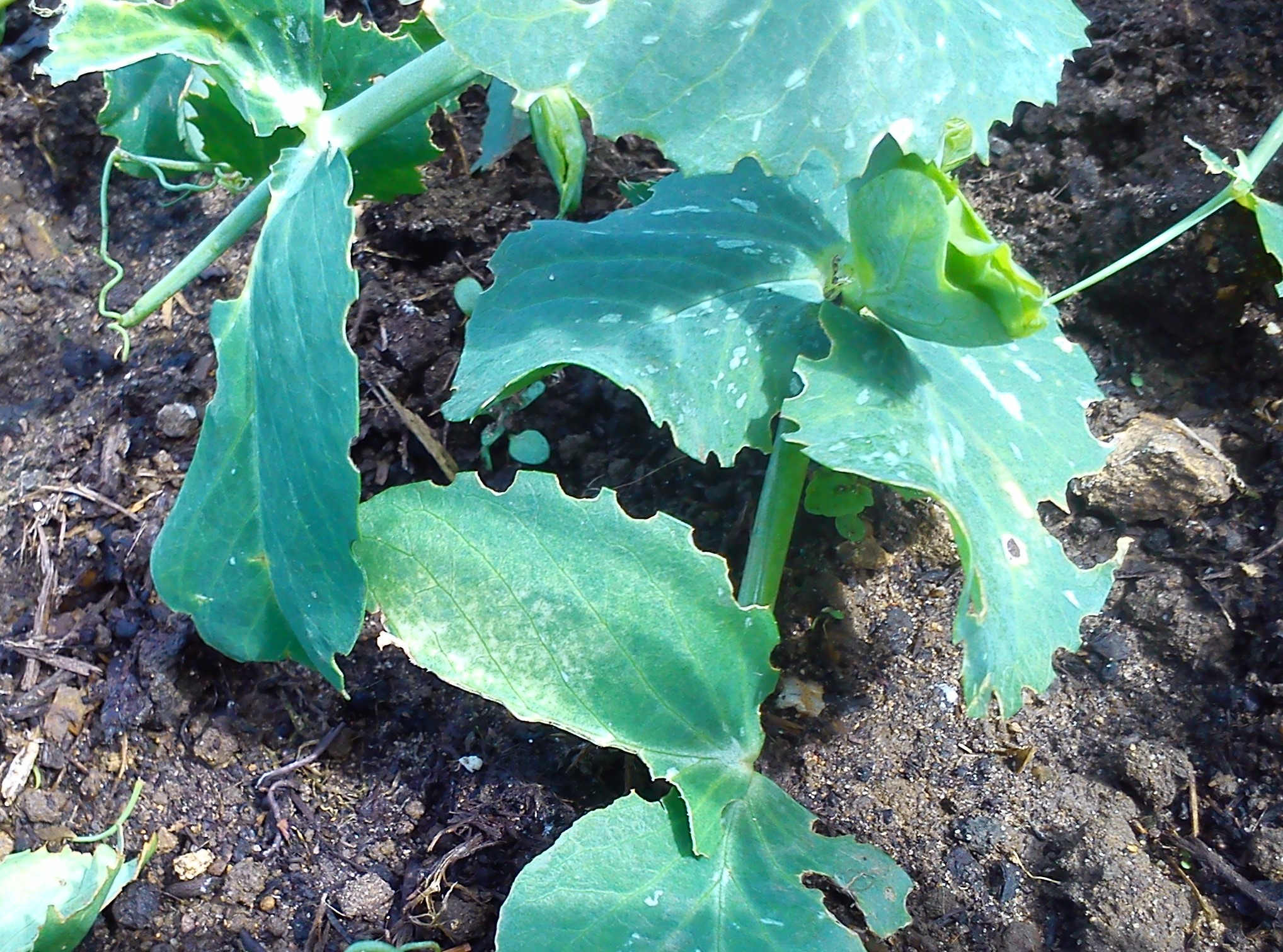 Zöldséges kertjeinkben kikelt a borsó, a dughagyma és a hagymamagvetések. Ám a földibolhák sem alszanak már; a borsóleveleken apró lyukak figyelmeztetnek jelenlétükre. Nem ritka az ormányos bogarak által a levélszéltől csipkésre rágott levél sem (képen).