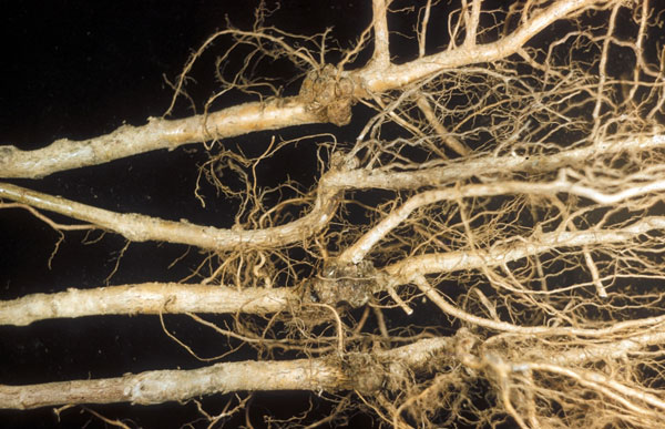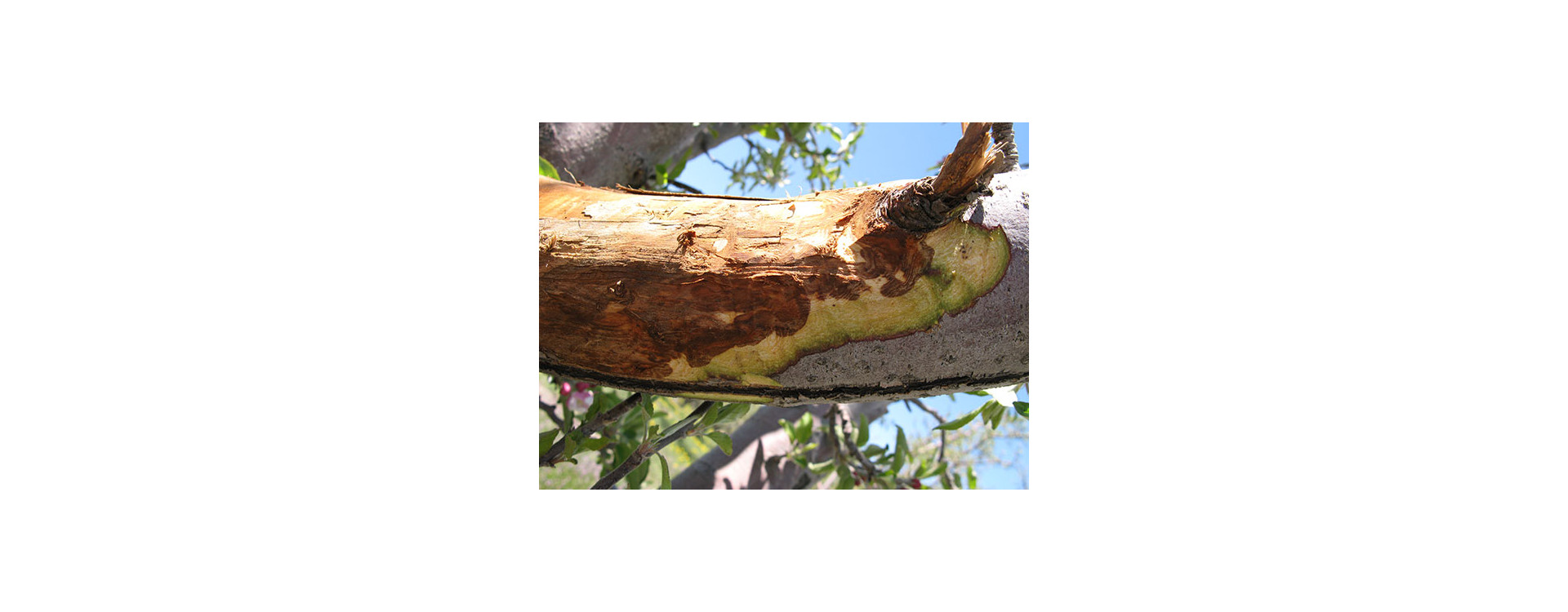 Külön érdemes foglalkozni az Agrobacterium kórokozóval, amely golyvásodást okoz. Széles a gazdanövényköre. Elsősorban a gyökereken, de a föld feletti részeken is képződhetnek daganatok. A golyvák kerekded, rücskös felületű képződmények. Kezdetben puhák, majd fásodók. Sebparazita baktérium. Pusztítása során a fák évről-évre gyengülnek, majd kipusztulnak. Faiskolai szaporítóanyag Agrobacterium-mentességére oda kell figyelni! (3. kép)