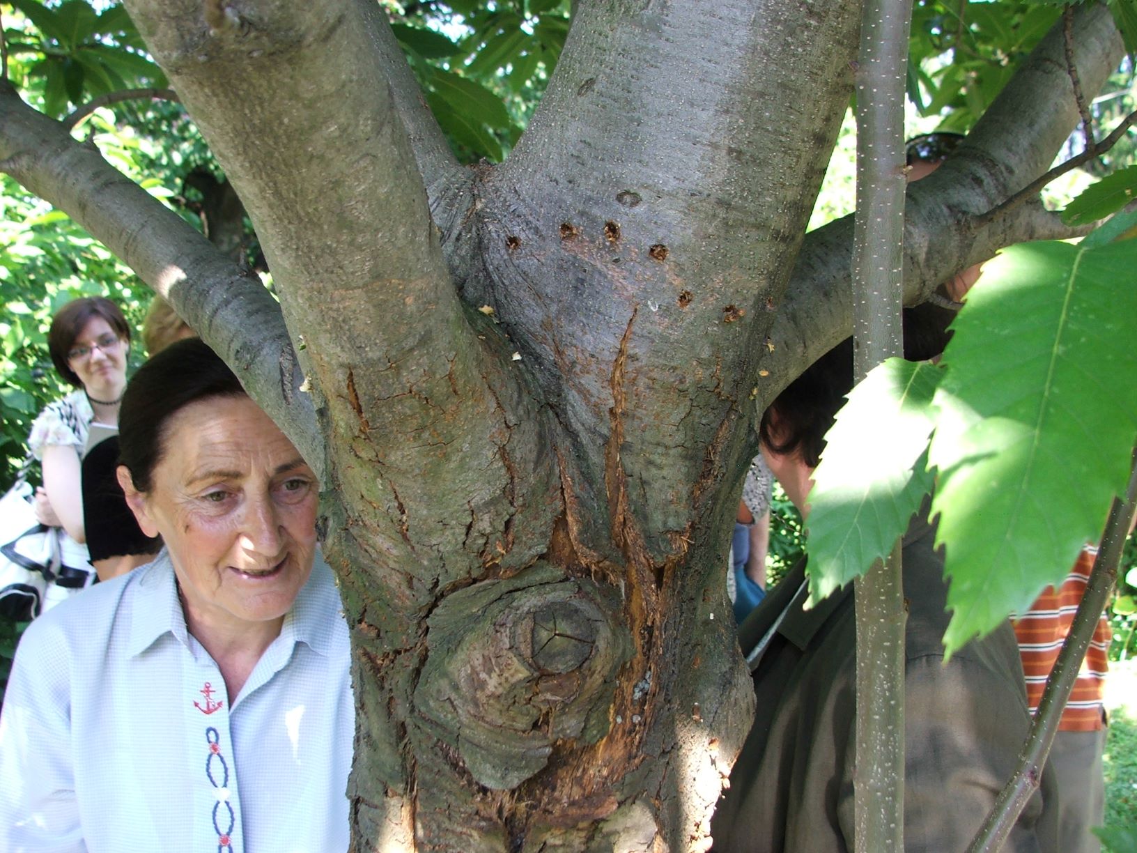 Gyakori a Nectria sp. okozta rákosodás gyümölcsfáinkon. Hazánkban mintegy fél évszázada jelent meg szelídgesztenyefáinkon a kéregrák (Chryphonectria parasitica). Ellene hatásos biológiai védekezés ismert (legyengített törzsekkel), és eredményesen alkalmazható. (A képen a szerző egy kéregrákos szelídgesztenyefa gyógyító kezelése közben, Sopronban. (a szerk.))