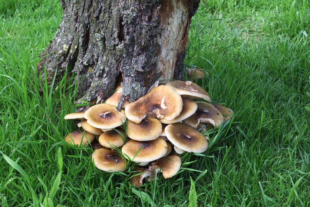 Különös, hogy a tölcsérgombák fertőzőképessége (patogenitása) elsősorban a gyenge, sínylődő gyümölcsfák és szőlők esetében tapasztalható, egyébként elsősorban szaprofiták, tehát alkalmi paraziták. Általában tuskókon, elhalt faanyagon, gyökérmaradványokon tenyésznek. Fekete, zsinórszerű képleteik a talajban elérik a fák tövét és a vastagabb gyökerekre is rátelepednek, behatolnak a kéreg alá. Az ősszel képződő barna színű termőtesteiről (kalapjairól) ismerhetjük fel a tölcsérgombákat (1. kép). Támadásuk hatására a fák levelei sárgulnak, az ágak elhalnak, végül a fa elpusztul. A gyökerek és a fa töve korhad, amit fehérkorhadásnak nevezünk. A beteg fa ki is dőlhet