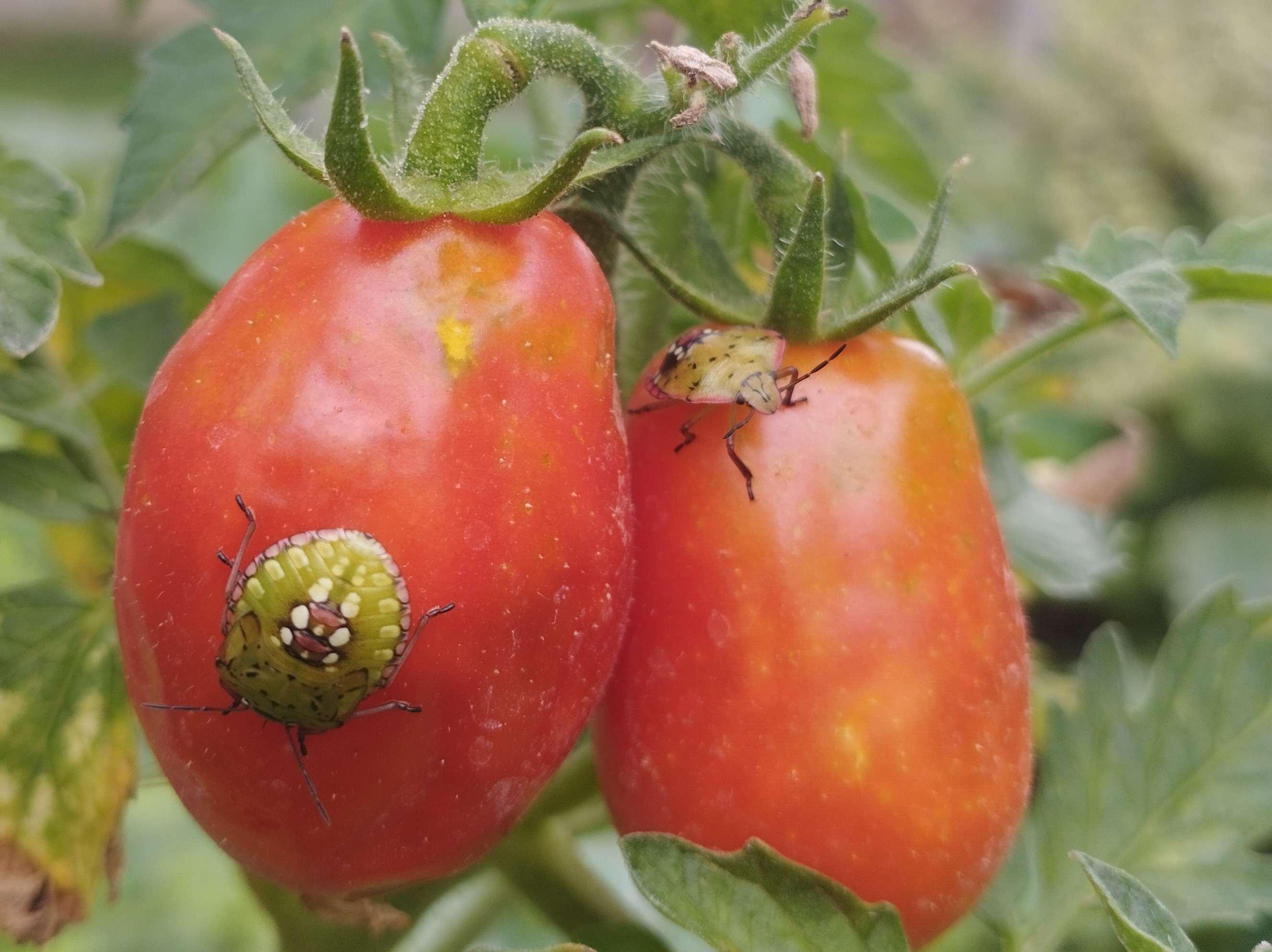 A levéltetvek a megtámadott fiatal növényi részeken tömegesen megtelepedtek. A poloskák elsősorban kedvelt növényeiket károsítják (pl. a babfélék), de a paradicsomon is megtalálhatjuk szinte az összes fejlődési alakját (képen). Az ormányos és egyéb levélbogarak, darázslárvák (rózsán a varródarázs jellegzetes tünetei gyakoriak) is sok helyütt előfordulnak. A nappali lepkék (káposzta, galagonya stb.) repkednek növényink körül, lárváik pár héten belül már károsítani fognak. A felsorolt kártevők ellen válasszák a Mospilant.