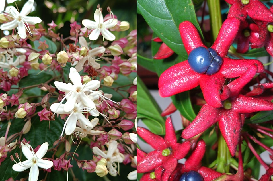 Elsőként említsünk a kései végzetfát (Clerodendrum trichotomum). Délkelet-Ázsiából származik, 4-5 éves kor után teleinket jól viseli. A fiatal növényeket érdemes inkább cserépben nevelni és télen a leánderhez hasonlóan teleltetni. Késő nyáron és kora ősszel (augusztus-szeptember) nyíló fehér virágai rendkívül illatosak, már messziről liliomra emlékeztető illatot árasztanak. Körülbelül 4-5 méter magasra és ugyanilyen szélesre növő, tőben elágazó bokor termetű növény, ami egy- vagy többtörzsű fává nevelhető. Igazi szépségét azonban a virágok elnyílása után megmaradó, élénkpiros, csillag alakú megvastagodott csészelevelek közepén ülő borsónyi, fényes, tintakék bogyószerű termései jelentik, lenyűgöző színkontrasztot alkotva. A fiatalabb sarjhajtásokon nyíló virágok és az idősebb részeken fejlődő termések gyakran egyszerre díszítenek.