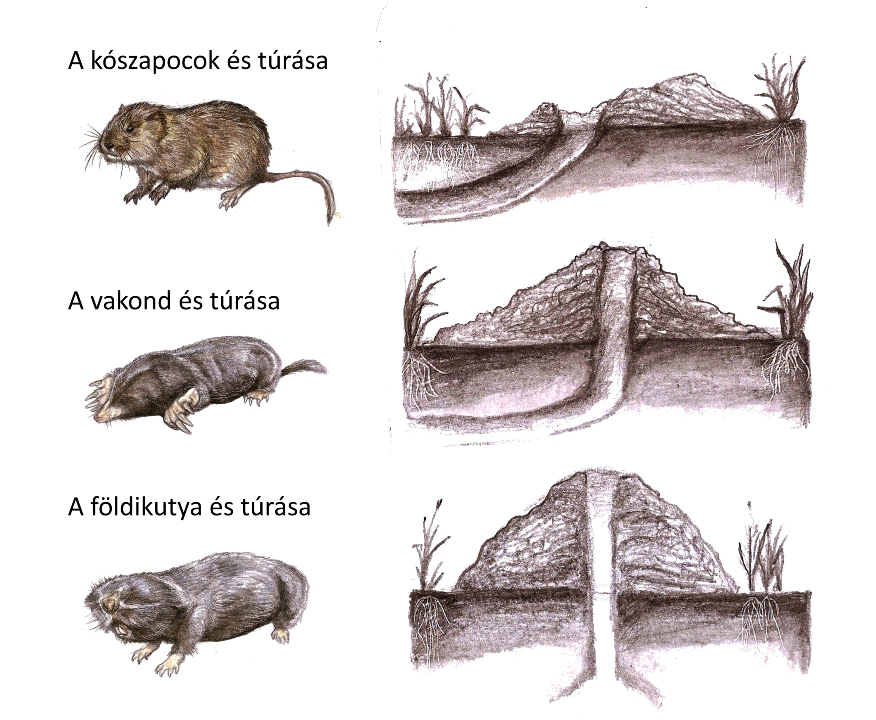 A nagyobb testű föld alatt élő emlősöket túrásaik alapján is tudjuk azonosítani. Az alábbi illusztráció a segítségünkre lehet.
