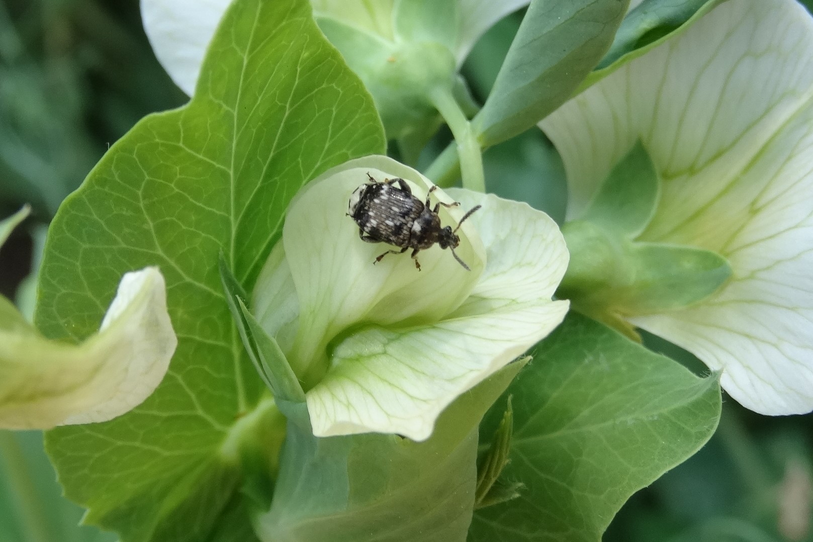 Rovarkártevők közül a zöldborsó-levéltetű, a borsómoly, a csipkézőbarkó, valamint a borsózsizsik megjelenésének van legnagyobb esélye. Sűrű állomány alatt jól érzik magukat a házatlan csigák.