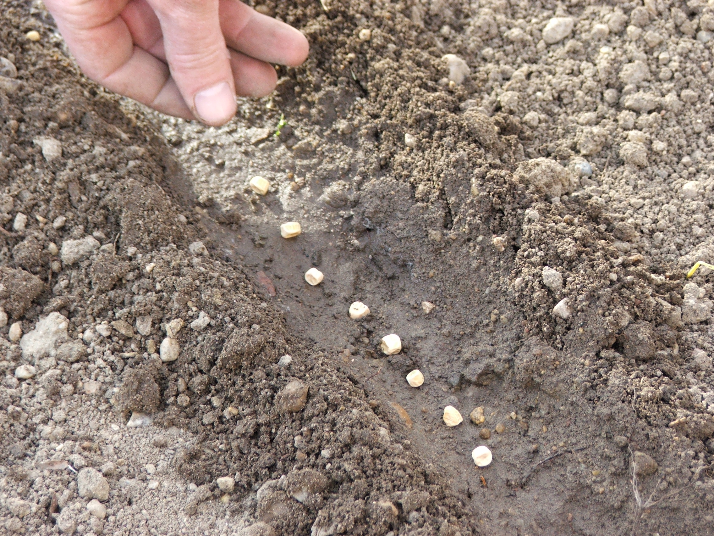 A vetőmagok kerüljenek laza morzsalékos talajba, 6-8 cm mélyre. A mélyebb vetés biztonságosabb kelést eredményez. Egyrészt védelmet nyújt a madarak ellen, másrészt pedig a mélyebb talajrétegekben a vetőmag jobban hasznosítja a vizet, és könnyebben csírázásnak indul. Ha gyakran előfordulnak galambok a kertben, érdemes kelésig rachel hálóval vagy fátyolfóliával takarni a borsósorokat. Az optimális tőtávolság 4-6 cm, az optimális sortáv pedig 15-20 cm.