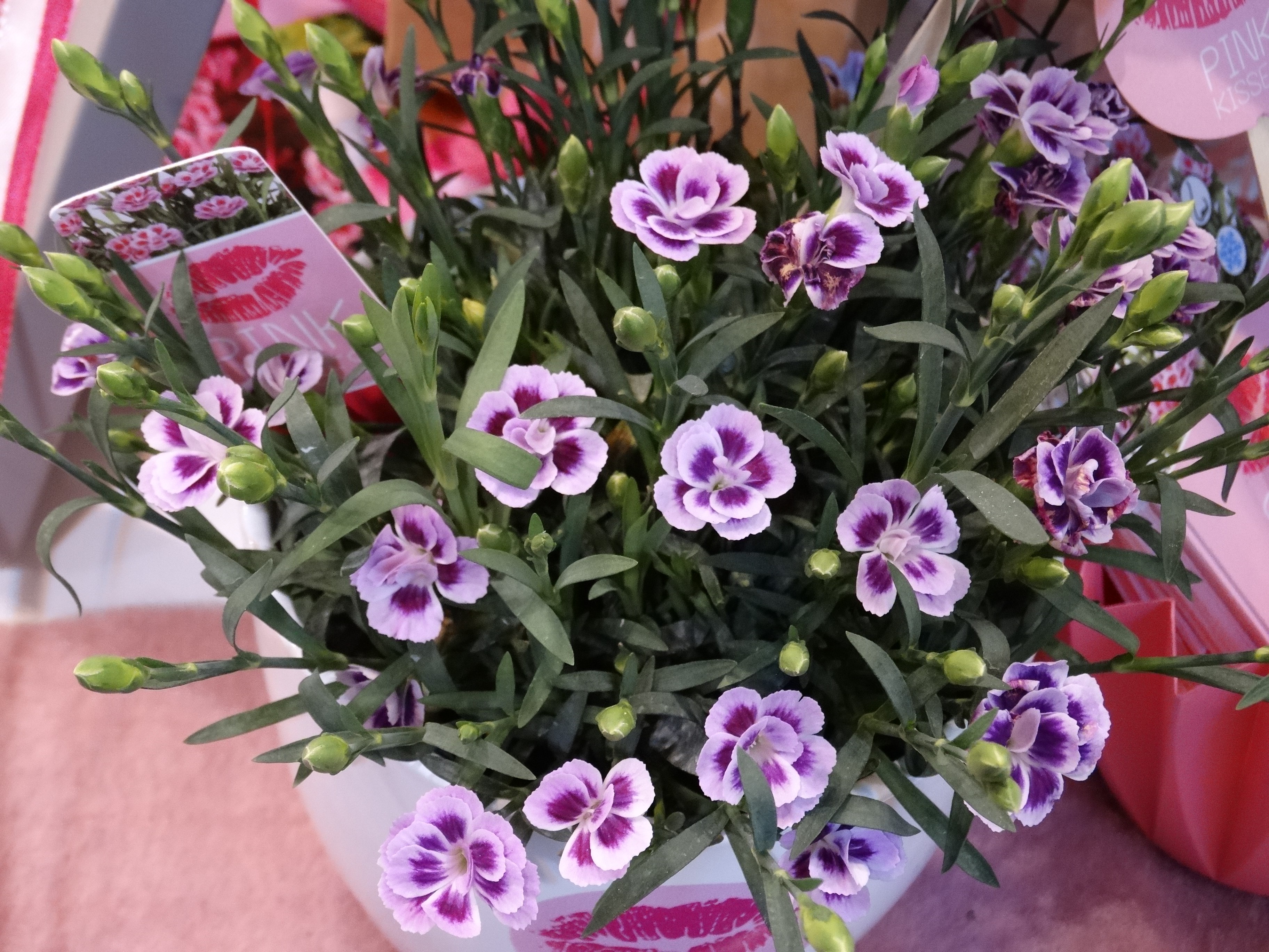 A kisvirágú cserepes szegfű (Diantus) is már elég korán kapható a virágboltokban. Régebben inkább anyák napi cserepes növény volt, ma már Valentin-napkor is felköszönthetjük vele a szerettünket. Különösen ehhez a naphoz illik a kiváló marketinggel megtámogatott, „csókos szájú” cserében kapható Pink Kisses (képünkön). Télálló, szabadföldbe vagy dézsába ültetve egyaránt mutatós, bőségesen virágzik és illatos is. A Pink Kisses virágainak közepe bordós-sötétrózsaszínes, majd a szirmok a szélük felé haladva egyre halványodnak. Más fajták lehetnek egyszínűek a bordó, a piros, a rózsaszín különböző árnyalataiban pompázók, vagy sárgák és fehérek.