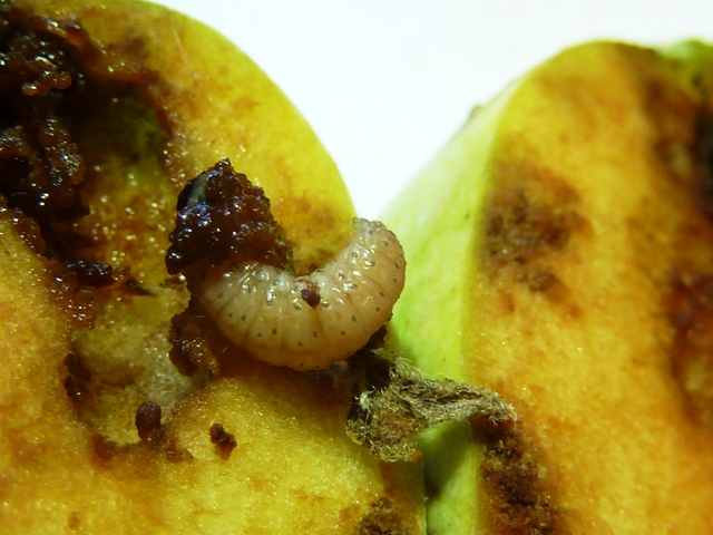 ► A budapesti fénycsapdában a puszpángokat tarrá rágó puszpángmolyt, bagolylepkéket és a gyümölcsmolyokat is begyűjtjük reggelente. A félbevágott útszéli almában fejlett almamoly lárvát találtam, már 10 napja is. Ez a hernyó talán már bábozódna pl. a törzs kéregrepedésében. Ugyanakkor a moly lepkéi is rajzanak, párzanak. Nem válik el élesen egymástól a két nemzedék. Hasonló a helyzet a szilvamolynál , a keleti gyümölcsmolynál és a kéregmolynál is. Érdemes megnézni a fogási táblázatot. A 12. felhívásban ismertettem a molyok elleni technológiát.