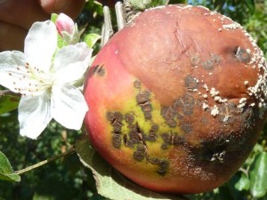 ► A késői érésű alma és körtefajtáknál felerősödött a varasodás. A fotó két hete készült. Az élelmezés-egészségügyi