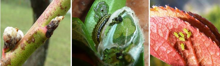 Különösen a nektarin és a sárgahúsú fajták szenvedhetnek tőle. A rügyekben vagy azok felületén telel át és már