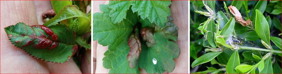 ►-A keddi, középső fényképen, a levélpirosító ribiszke-levéltetű kárképét láthatják. Június végére elhagyják a ribizlit az említett tetvek, gazdacserések. Ahol csak néhány levelet torzítanak el, ott permetezés nélkül is megvárhatják az elköltözésüket. A speciális levéltetűölők mellett (pl. Pirimor 50 WG, Teppeki) az egyéb rovarölők is hatásosak lehetnek. A kontakt piretroidok közül pl. a Karate 2,5 WG (Zeon 5 CS), Kaiso Garden, Nagomi, Decis, Cyperkill 25 EC közül választhatnak. De levéltetvekre is engedélyezett a felszívódó Mospilan 20 SG (és névváltozatai pl. a Gazelle), valamint a kontakt a Mavrik 24 EW.