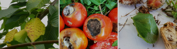 A térben és az időben is szélsőségesen alakult az időjárásunk. Néhány károsító a megszokottnál korábban jelentkezett. A szárazabb, melegebb körülmények között a lisztharmattal és az atkákkal, míg a párásabb kertekben, kertrészekben a peronoszpórával, néhol a sérült szőlőbogyókon, szedren a szürkepenész induló támadásával is számolni kellett. Az említett károsítókról már többször írtam, a bevethető III. kategóriás szerek köre sem változik már évek óta. Aszályt és kánikulát jósolnak a jövő hétre. Ez általában csökkenti a gombák „fertőzési nyomását”. (Kivétel pl. a letermett cseresznyefákon terjedő blumeriella, levélhullást okozhat. A friss fotót az agroinform.hu oldalon találtam.) Aszályban, hőségben nehezen tudják felvenni a növények a számukra szükséges tápanyagokat, egyre több hiánytünetet és napégéses perzselést láthatunk majd a növényeinken.