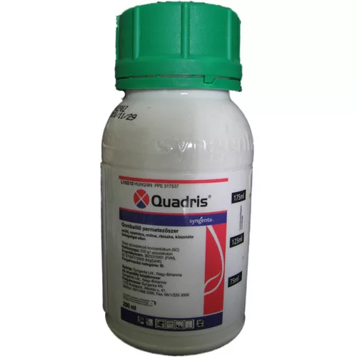 For first treatments, depending on the infection, contact (Bravo + Thiovit Jet) or systemic (Ridomil Gold MZ + Topas) are recommended. Start treatment with Quadris at flowering. Then spray again with Quadris.