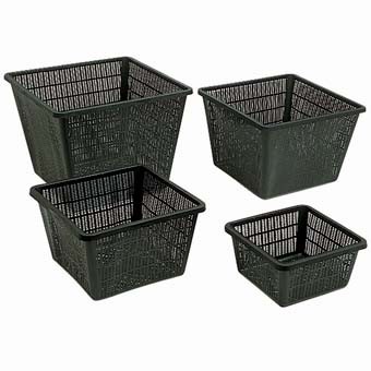 Planting baskets used for planting aquatic plants. Using them avoids uncontrolled overgrowth of aquatic plants in the pond and allows pond soil to be placed only where it is needed. They also make it much easier to transplant plants.
