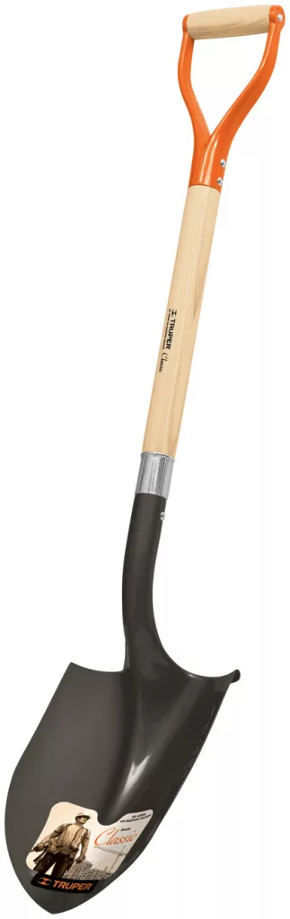 Digging spade, 22 cm wide heat treated steel head, 104 cm long lacquered wood D-handle (metal)