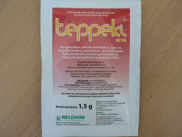 Home use: 1,5 g/10 l water. Insecticidal spray. Active ingredient: 50% flonicamid Marketing category: III. free circulation Use: 3 sachets per 100 l of water are required to control aphids in potatoes. In peaches, apricots and apple crops (apples, pe...