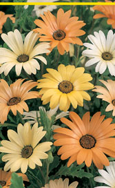 Dimorphoteca sinuata African golden flower The carpet-like masses of nesting flowers in early summer evoke the magic of a desert in bloom.A 20-25 cm tall, well-bushing annual. Its silky, glossy flowers, 3-4 cm across, bloom simultaneously in various shades of yellow. The flowers are only showy in sunlight, closing in the afternoon. It requires well-drained, sandy soil. Sowing: sow in mid-April. Thin after emergence. Use: excellent in mixed flowerbeds as a spot of colour or as a border plant. Space: 20x20 cm.