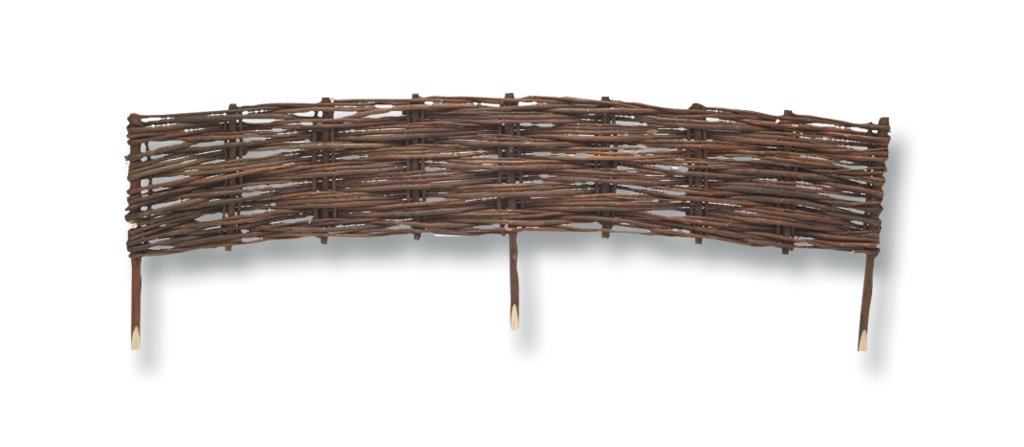 - Unique, decorative, woven bed edging made of unpeeled willow.
