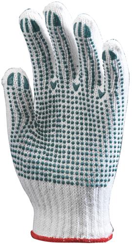 - double-fibre, knitted, polyester/cotton - anti-slip dots on palm - rubberised cuffs